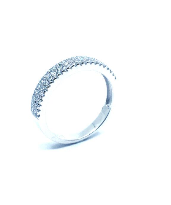 SØLV RING RHODINERET MED 3 RÆKKER SYNTETISKE ZIRKONIA