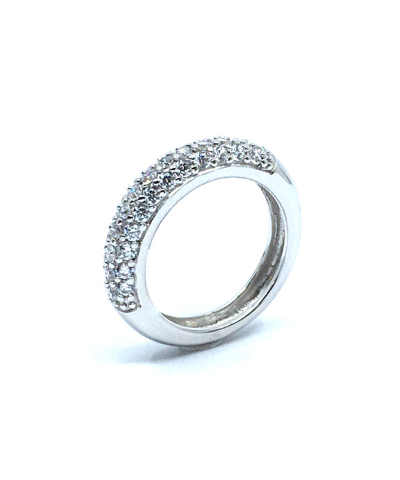 SØLV RING RHODINERET MED 3 RÆKKER SYNTETISKE ZIRKONIA
