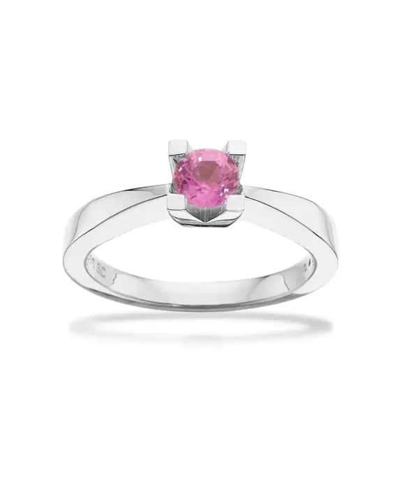 14 karat hvidguld ring med en pink safir på 0,40 carat.