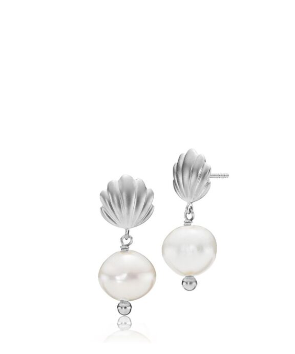 Feminine øreringe der leder tankerne hen på vand, sand og strand. Drøm dig væk til fjerne destinationer med disse skønne sølv øreringe i mat sterling sølv med en ferskvandsperle.