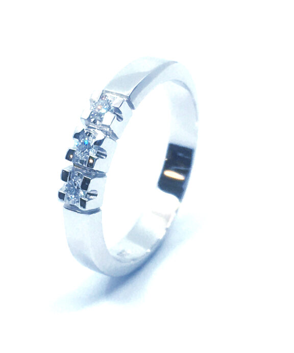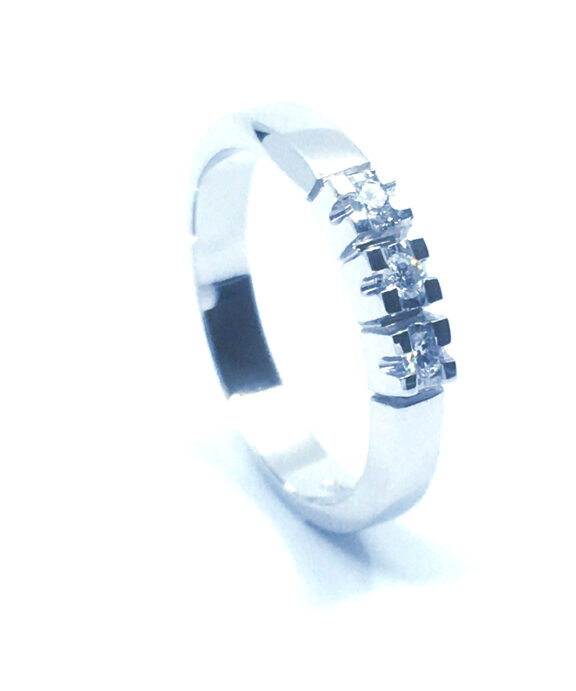14 KT. ALLIANCE RING HVIDGULD MED BRILLANT 3X0,03 CT. W/SI