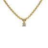 Vedhænget er lavet i 14 karat massiv guld og holder brillanten med fire grabber. Til vedhænget medfølger en forgyldt sølv rund anker kæde med tråd tykkelse på 0,40 mm og en længde på 45 cm. Kæden kan ombyttes hvis man vil det.