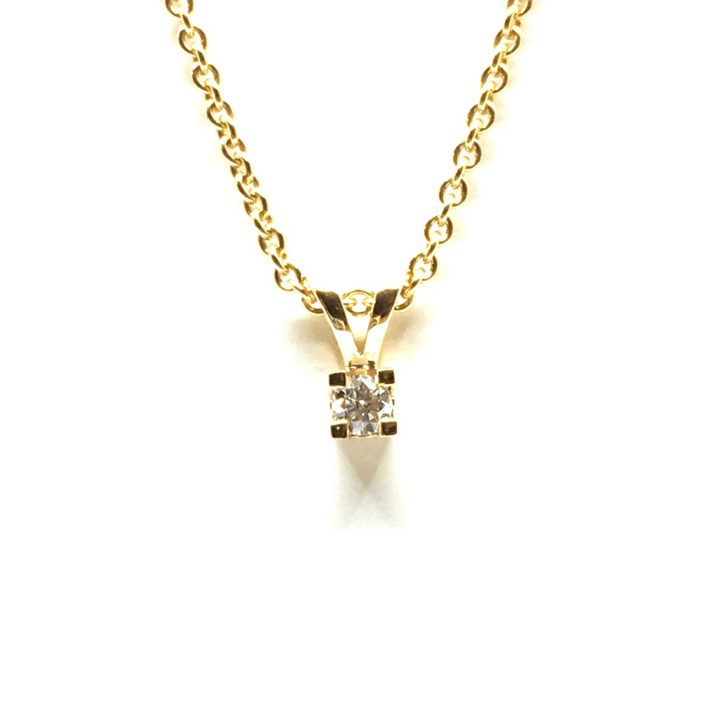 14 KARAT GULD EVA VEDHÆNG MED BRILLANT 0,10 CT. W/SI + SØLV FORGYLDT KÆDE