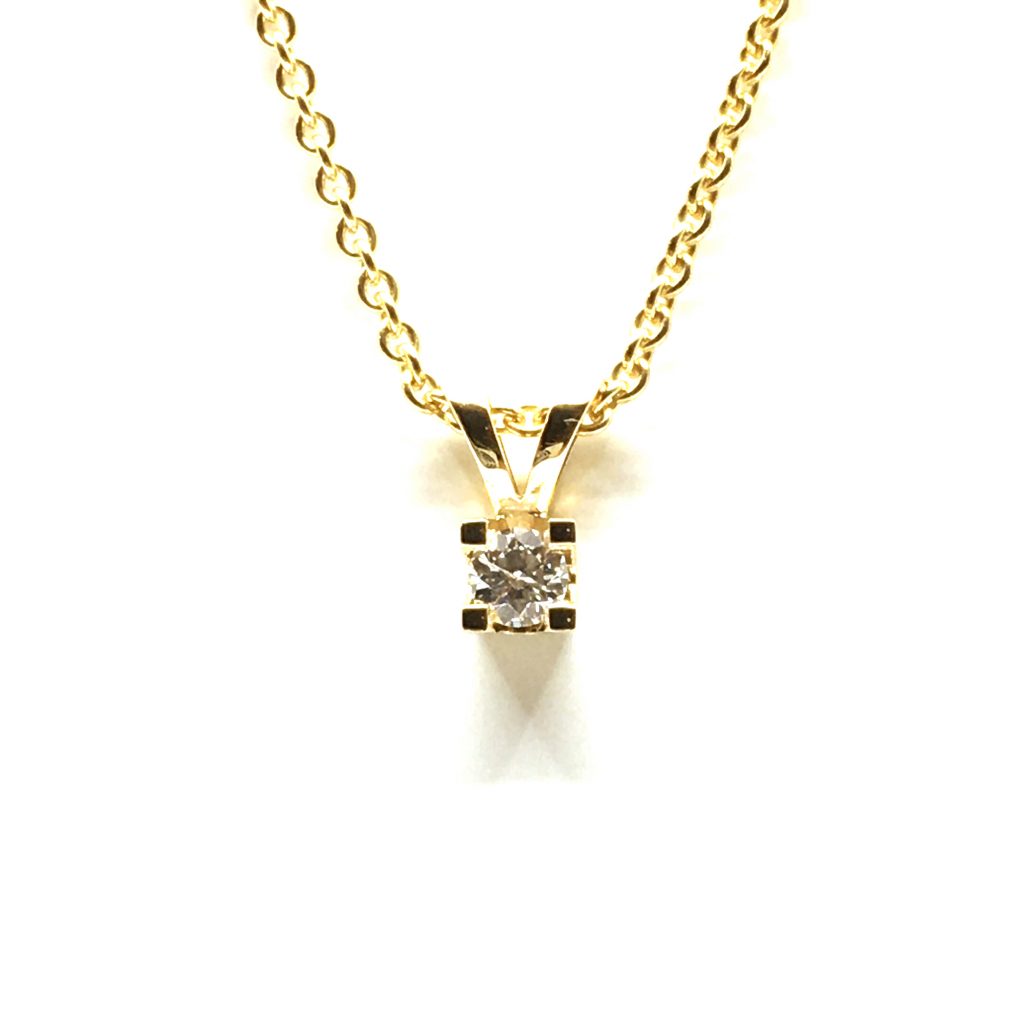 14 KARAT GULD EVA VEDHÆNG MED BRILLANT 0,15 CT. W/SI + SØLV FORGYLDT KÆDE