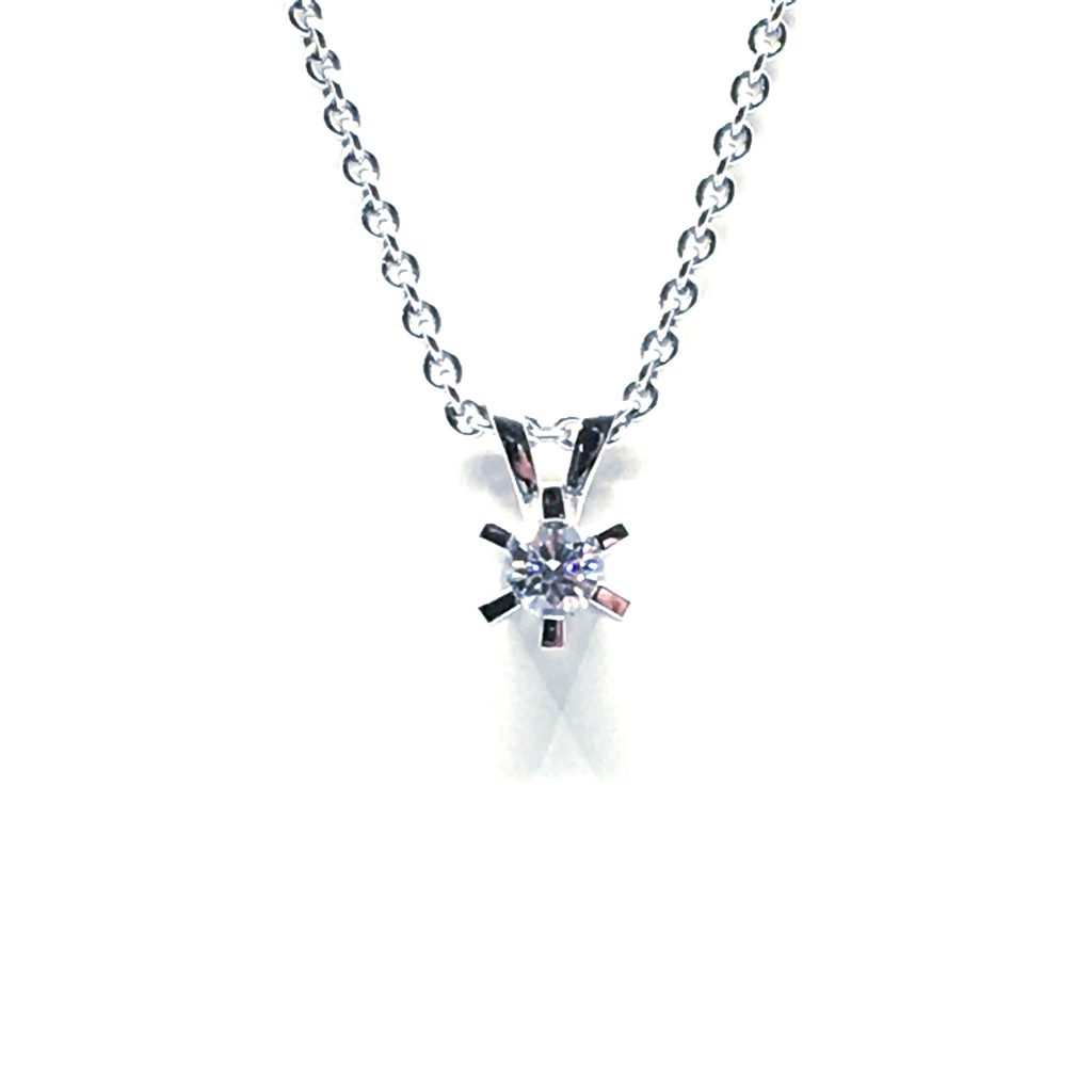 14 KARATR HVIDGULD CARLA VEDHÆNG MED BRILLANT 0,15 CT. W/SI + SØLV KÆDE