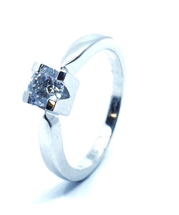 14 KT. HVIDGULD EVA RING MED BRILLANT 0,50 CT. W/SI