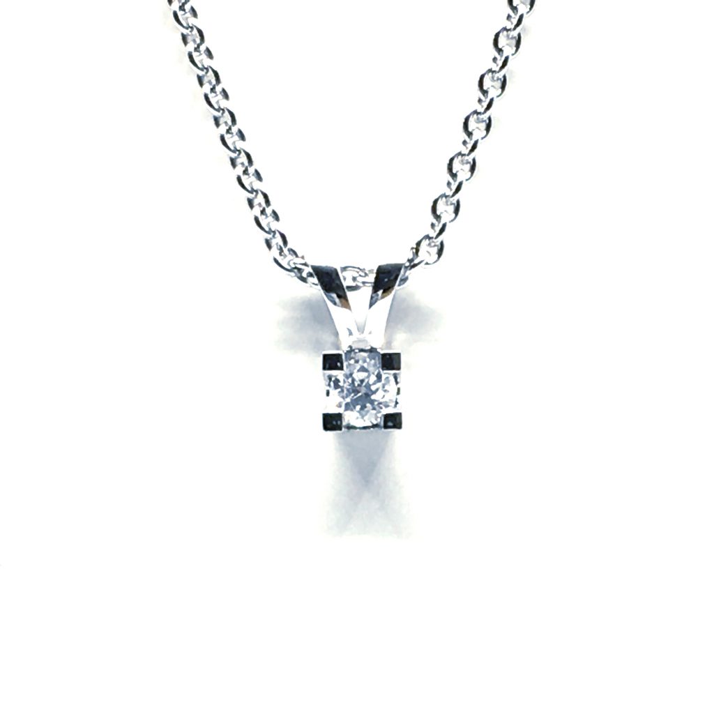 14 KARAT HVIDGULD EVA VEDHÆNG MED BRILLANT 0,10 CT. W/SI + SØLV KÆDE