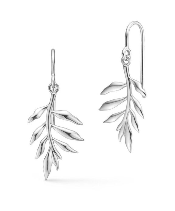 De flotte øreringe med Julie Sandlaus signaturblad er håndlavet i 18 karat rhodiumsbelagt hvidguld.