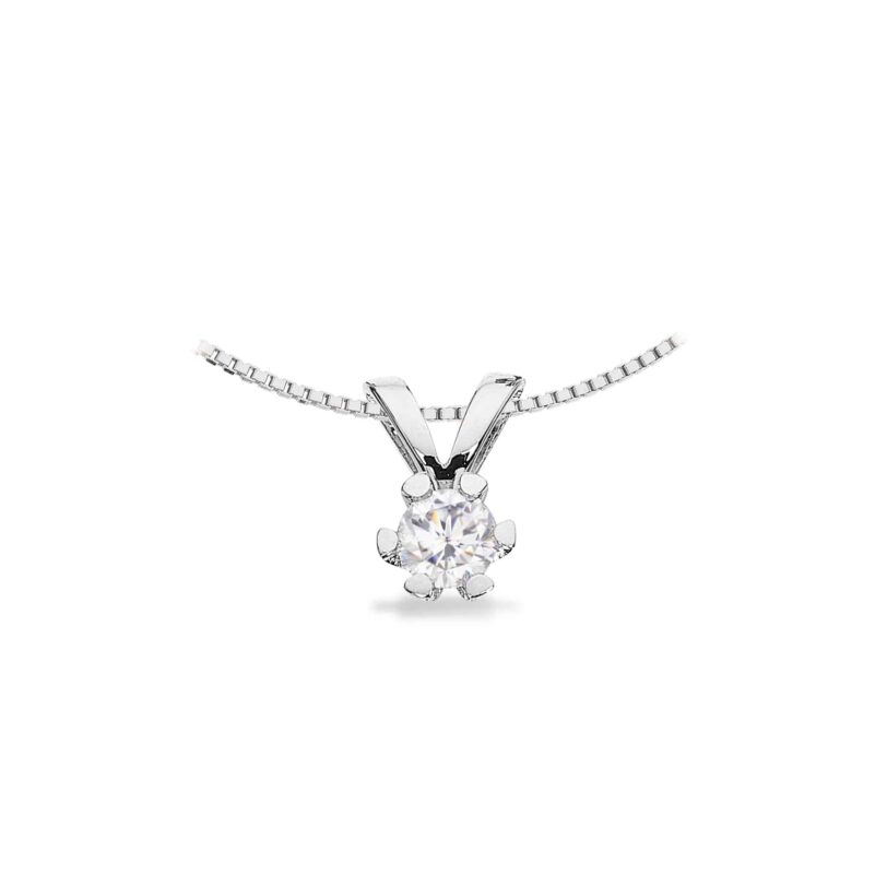 8 karat hvidguld vedhæng med brillant 0,15 carat i kvaliteten wesselton/p1. Vedhænget er fra serien VIDA og den bliver også lavet i guld. Vedhænget er en del af en ombytningsserie, hvor man inden for to år kan ombytte den til minimum et nummer større.