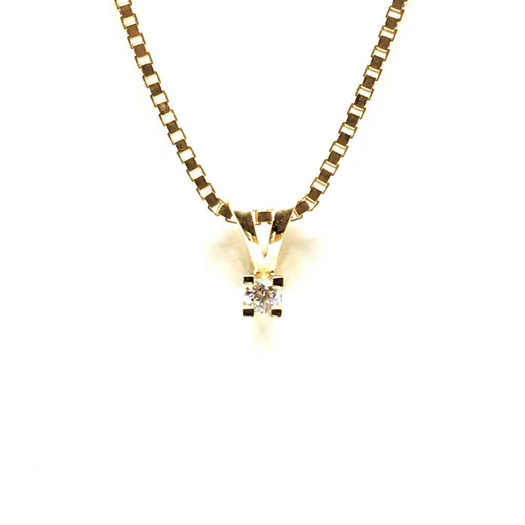 Diamant vedhænget fås i flere størrelser og i både rødguld og hvidguld.