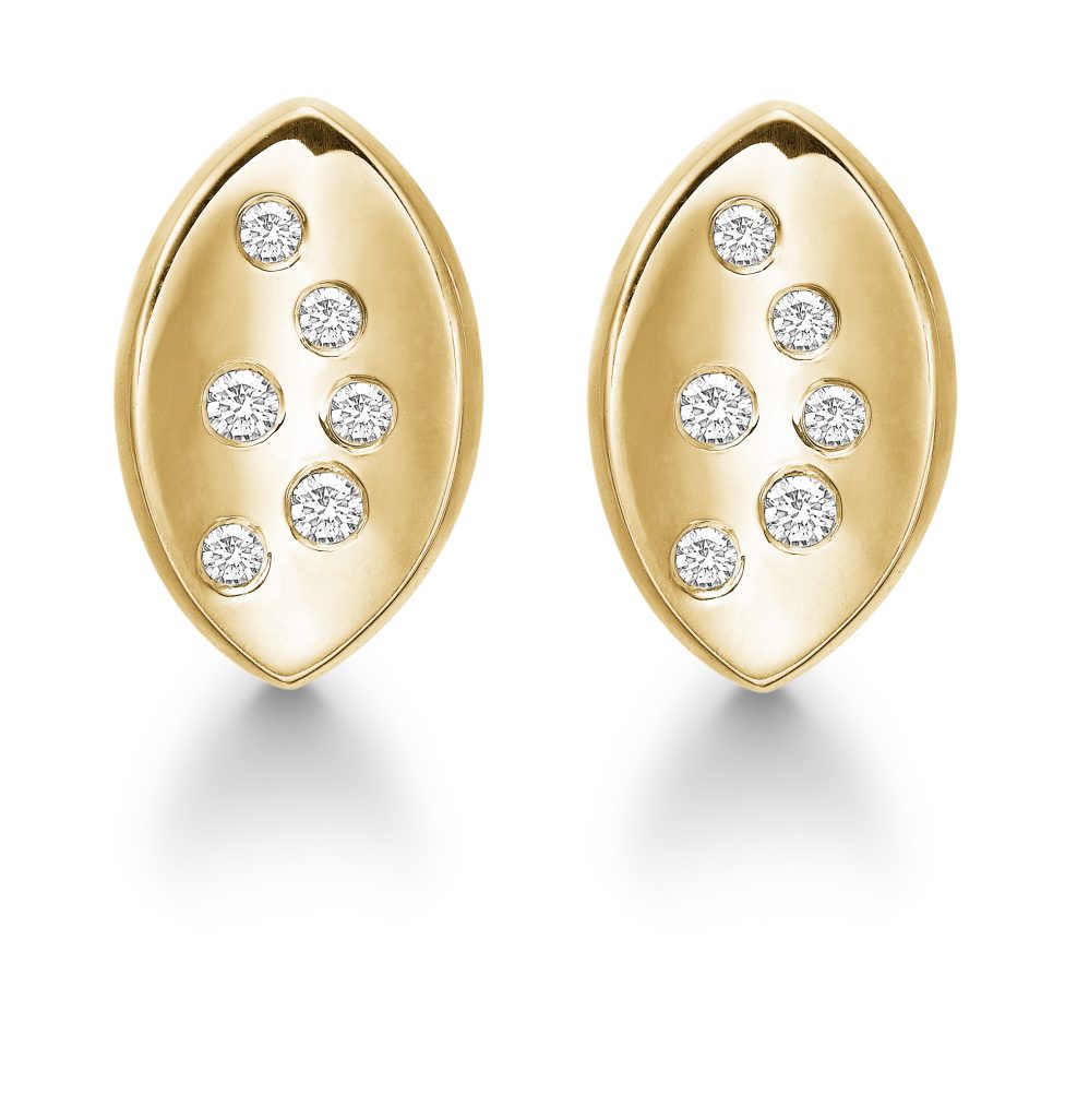 Aagaard øreringe stik i 8 karat guld med syntetiske zirkonia. Ørestikker er oval formet og minder om et blad med dug dråber på. Ørestikker matcher der også en halskæde til med sammen flotte udtryk.