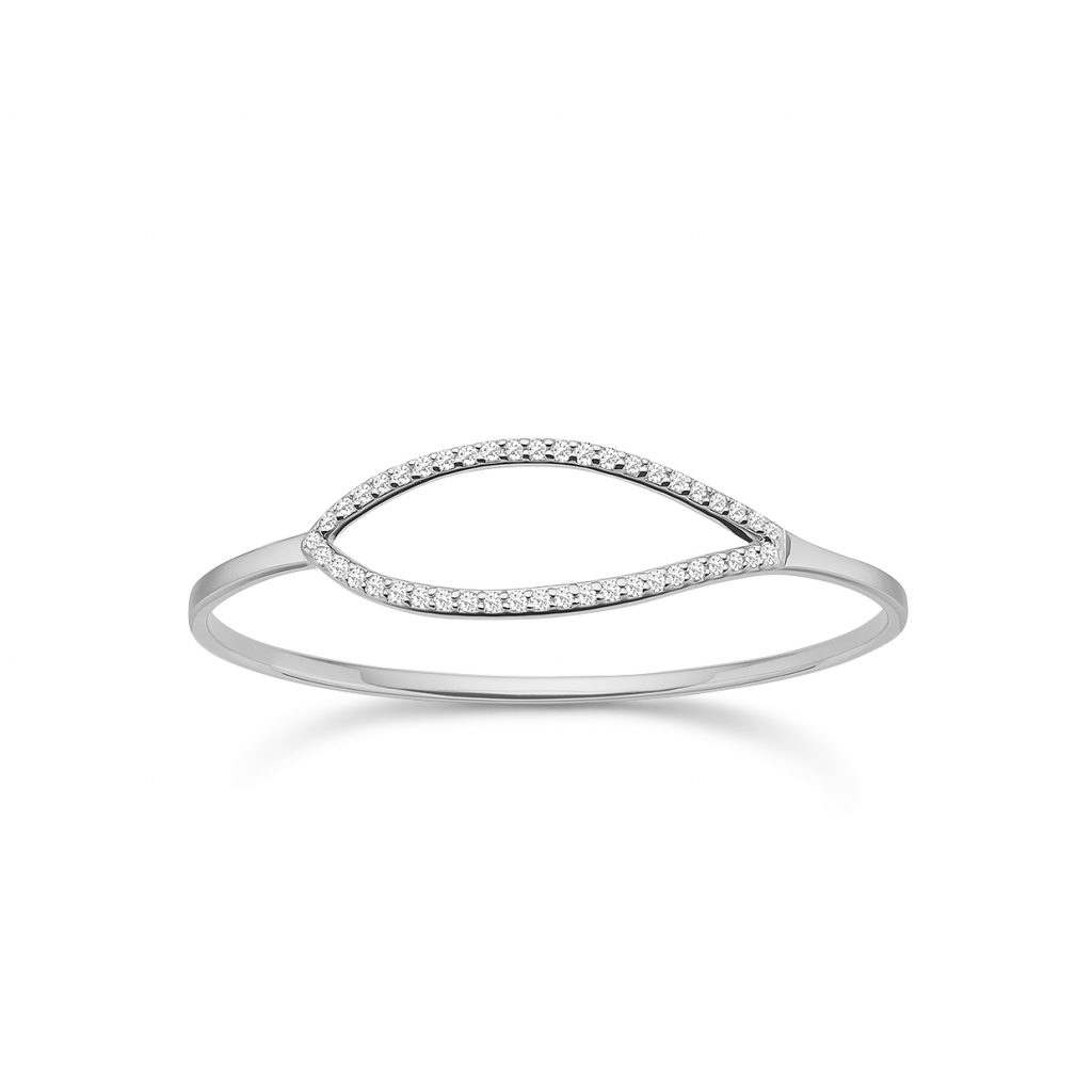 Sød armring fra Aagaard i rhodineret sølv. Armringen har en buet bladform der er besat med syntetisk zirkonia.