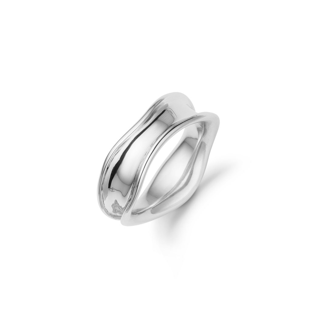 Her får du en lidt kraftigere ring fra Aagaard. Ringen er i rhodineret sølv og har en bølget form der giver den et levende udtryk.