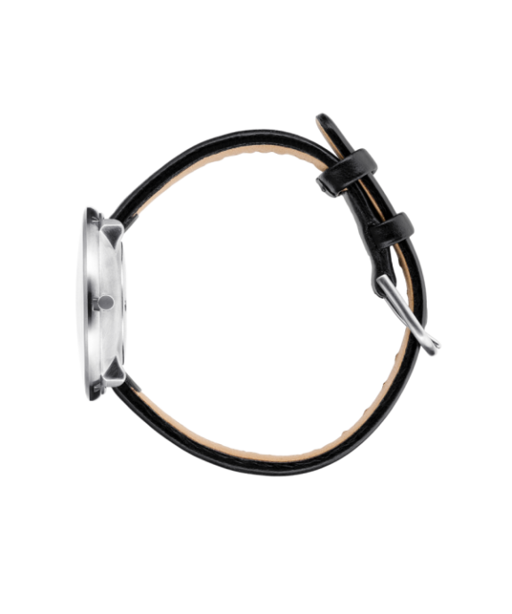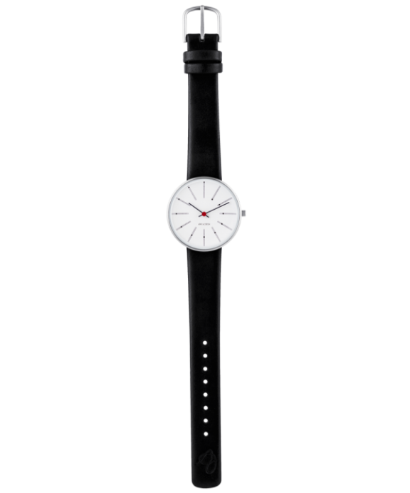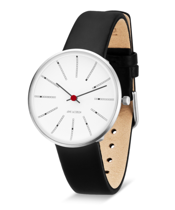ARNE JACOBSEN BANKERS 34MM STÅL OG SORT LÆDER – 53101-1601