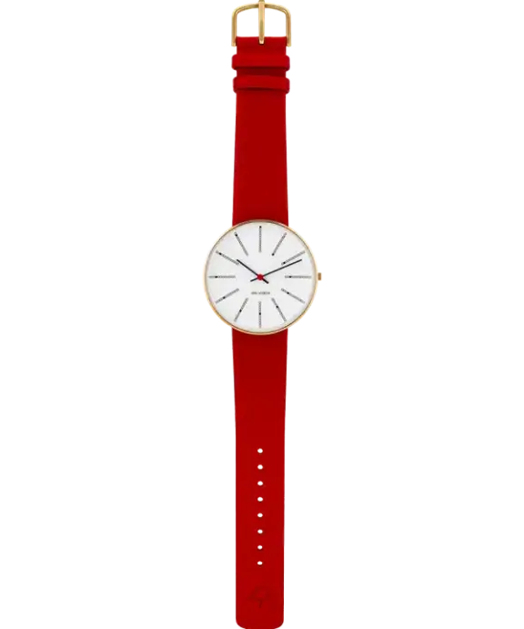 ARNE JACOBSEN UR BANKERS MED RØD LÆDERREM 40MM – 53108-2003G