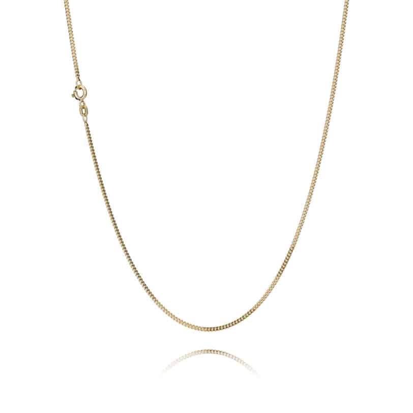 Kæden er en massiv sølv kæde, som er forgyldt med en 5 mikron tyk forgyldning.
