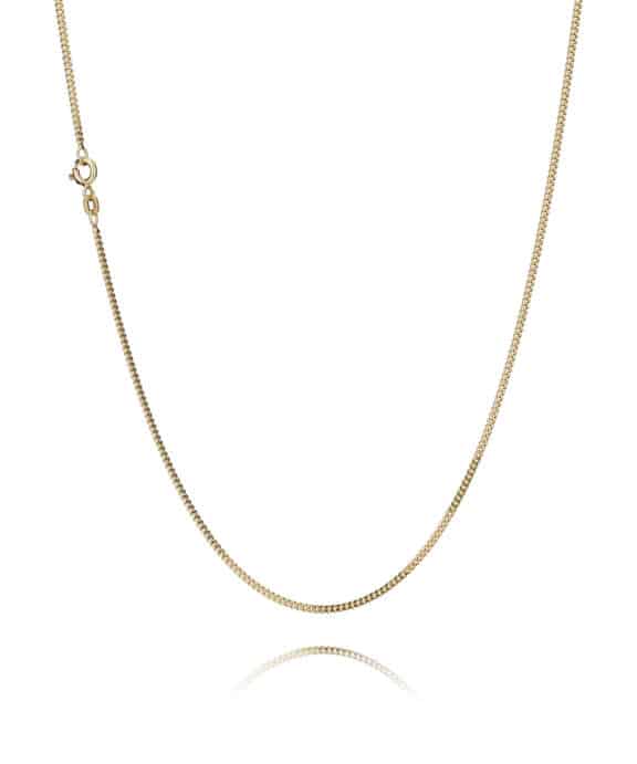 Kæden er en massiv sølv kæde, som er forgyldt med en 5 mikron tyk forgyldning.