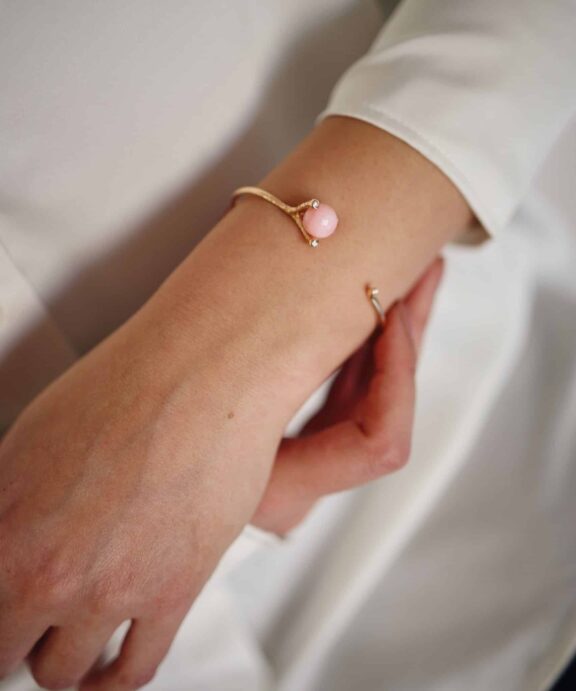 Armbåndet er lavet i massiv 14 karat guld med en kraftig karabin lås.