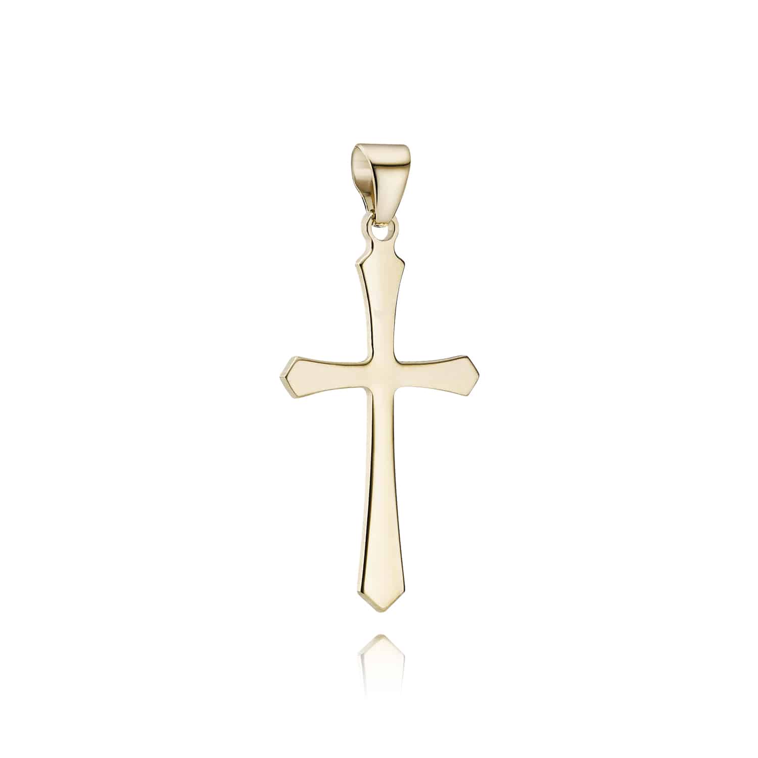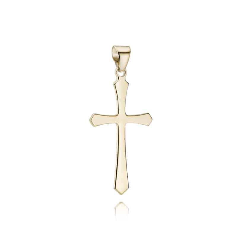 Korset er udstyret med et patz øsken til den kæde man vælger og er med blank overflade.