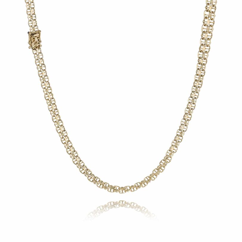 Halskæden har en bredde på 7 mm og en tråd tykkelsen på 0,90 mm.