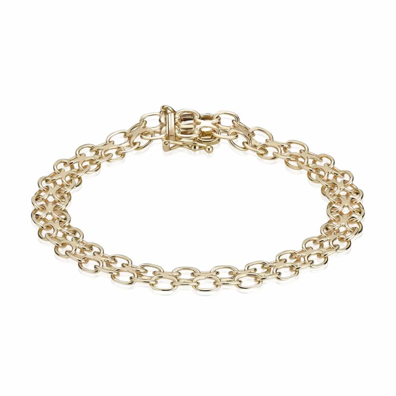 Armbåndet er med to rækker uden sten og har en tråd tykkelse på 0,8 mm.