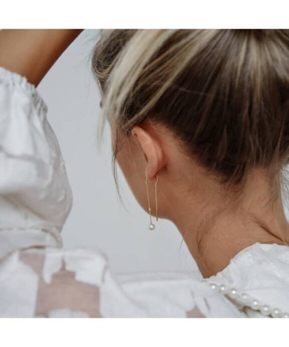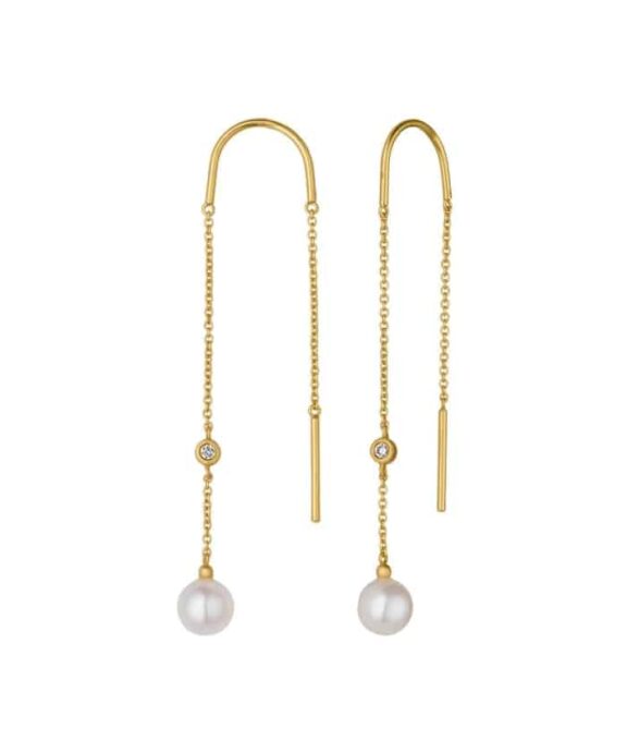 Disse elegante ørekæder med perler i forgyldt sølv, er inspireret af den sofistikerede kvinde med det formål at bringe kvindeligheden frem i enhver, som bære disse øreringe.