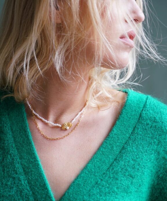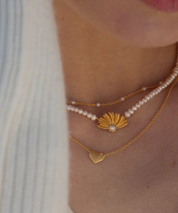 BYBIEHL POPPY HALSKÆDE FORGYLDT SØLV MED PERLER – 3-4101WP-GP
