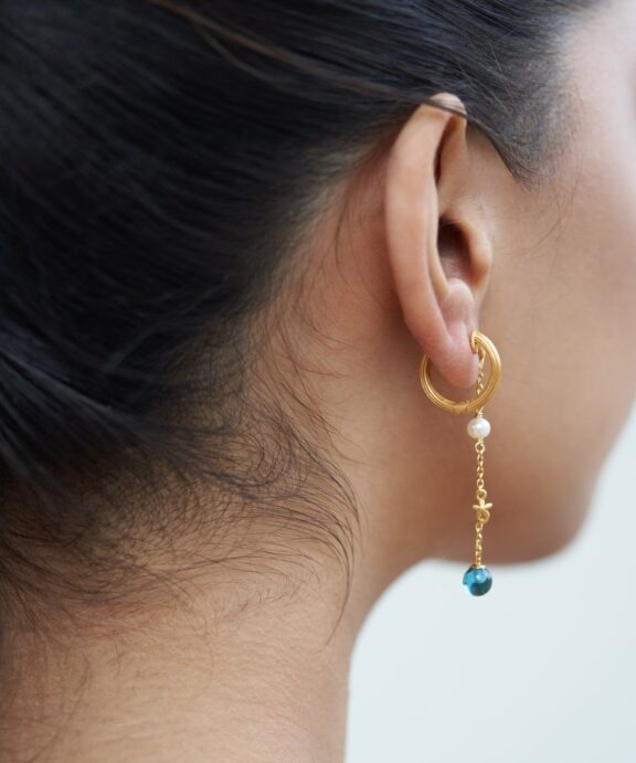 BYBIEHL POSY ØRERINGE SØLV FORGYLDT MED FERSKVANDSPERLE OG BLÅ KRYSTAL – 4-3201B-GP