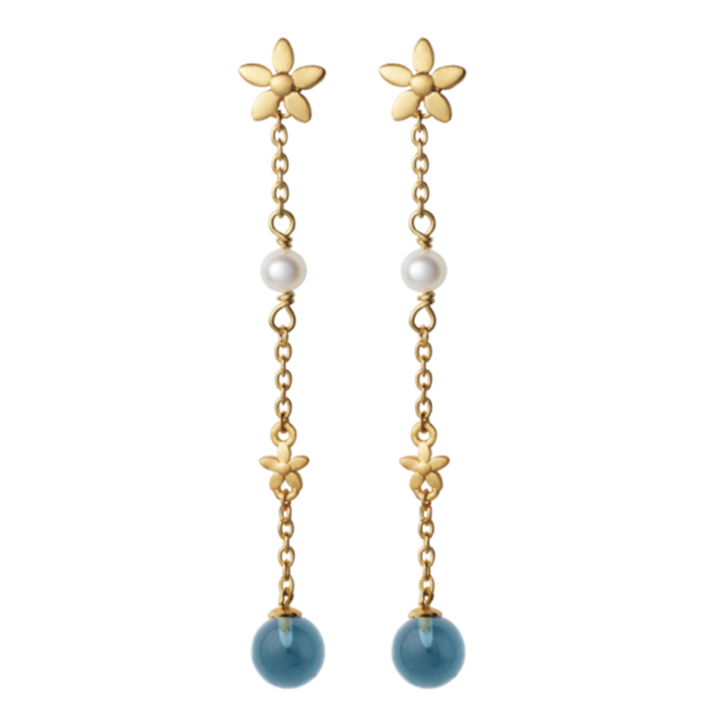 BYBIEHL POSY ØRERINGE SØLV FORGYLDT MED FERSKVANDSPERLE OG BLÅ KRYSTAL – 4-3201B-GP