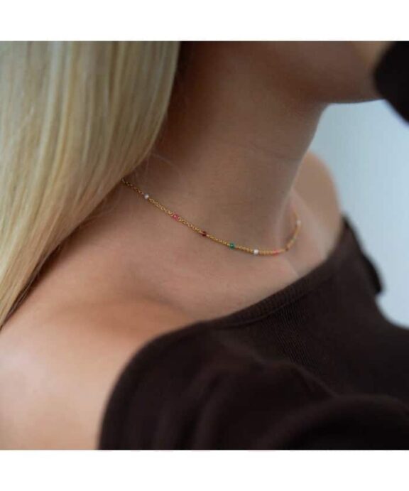 Sølv forgyldt halskæde i 45 cm som kan justeres både til 40 og 42 cm. De små personer har en højde på 10 mm og en bredde på 5 mm.