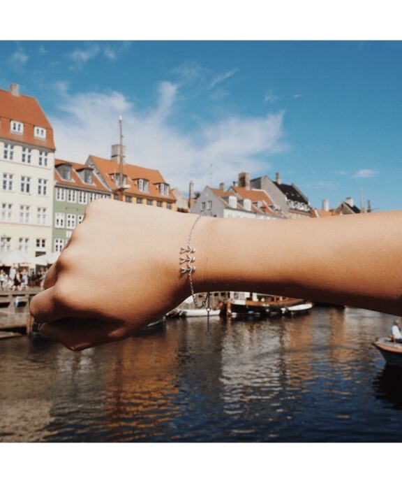 Sølv armbånd med tre mennesker. Armbåndet er 19,5 cm men kan justeres ind. Menneskerne har en højde på 10 mm og 5 mm i bredden. Armbåndet er i børstet sølv som er rhodineret.