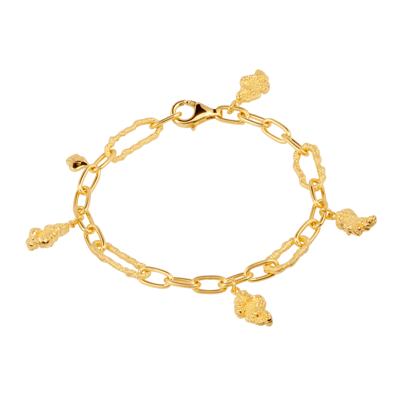 Armbåndet er lavet i 925 forgyldt sterling sølv. Forgyldningen er en 22 karat forgyldning.
