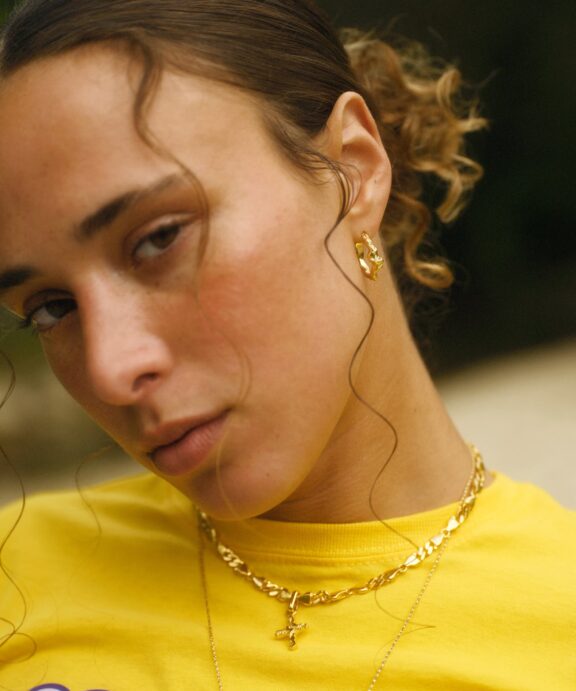 Øreringene er håndlavet i 925 sterling sølv og smukt belagt med en 22 karat forgyldning. Med deres markante design og perfekte størrelse er de ideelle til dig, der ønsker et smykke, der både er elegant og har kant.