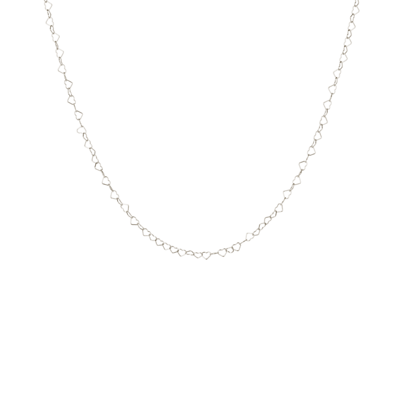 Hjerterne måler 4×4 mm og halskæden har en længde på 45 cm.