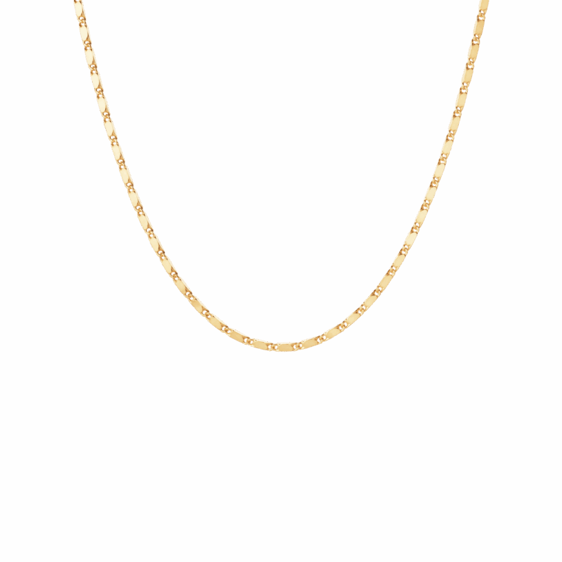 Med sin fyldige kæde og varme gyldne glød er halskæden et smykke, der tilføjer kant og eksklusivitet til ethvert look – uanset om den bæres alene eller som en del af et lag-på-lag udtryk.