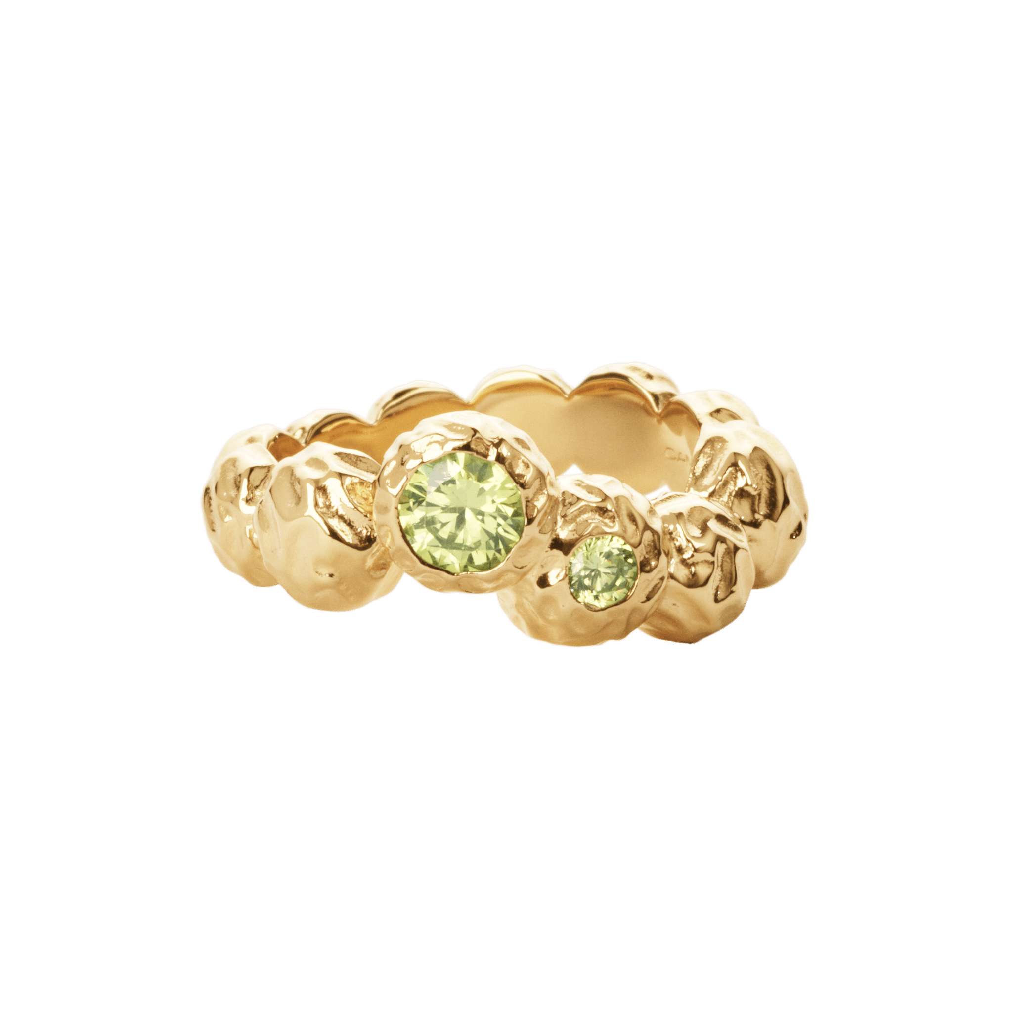 CAMILLE BRINCH LARGE WARY DOTS RING I FORGYLDT SØLV MED LYSGRØN ÆDELSTEN – LWDR-FG