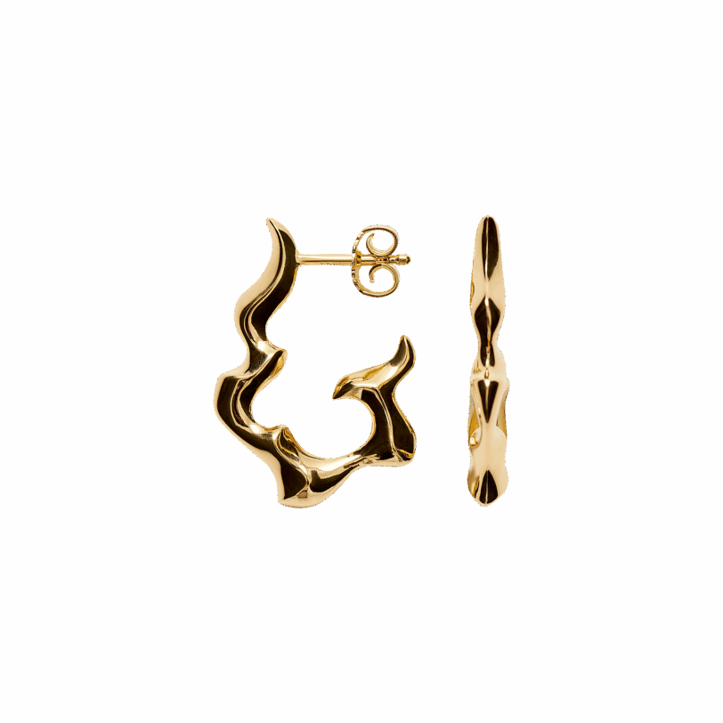 Øreringene er håndlavet i 925 sterling sølv og belagt med en eksklusiv 22 karat forgyldning, som giver dem et varmt, gyldent skær. Det unikke design fanger både lyset og blikket – og tilfører en naturlig styrke og femininitet til dit outfit. Perfekte til både hverdagsbrug og særlige anledninger.