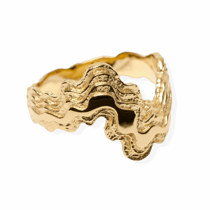 Camille Brinch Mellem Blurry Layers ring i forgyldt sølv er et smukt og moderne smykke. Denne ring er designet med et unikt udtryk, hvor bløde og organiske former kombineres for at skabe en drømmende effekt.