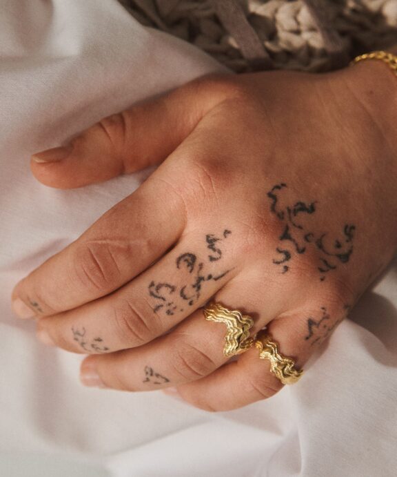 Camille Brinch Mellem Blurry Layers ring i forgyldt sølv er et smukt og moderne smykke. Denne ring er designet med et unikt udtryk, hvor bløde og organiske former kombineres for at skabe en drømmende effekt.