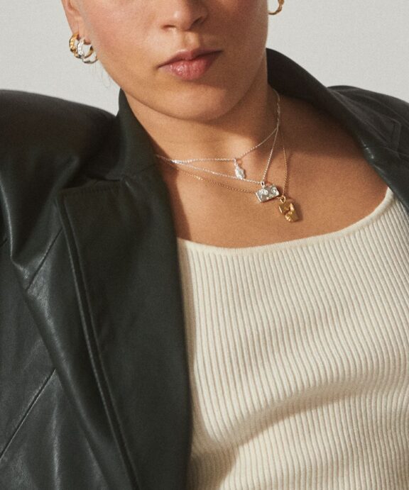 Designet består af flere lag, hvilket skaber en smuk dybde og dimension i udseendet. De såkaldte “nugget” elementer tilføjer en interessant tekstur og variation, og gør halskæden både trendy og tidløs. Det lagdelte design gør det muligt at bære halskæden alene for et minimalistisk look, eller i kombination med andre smykker for en mere boho-inspireret stil.