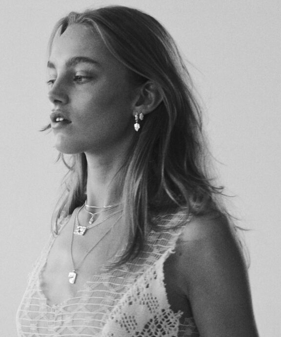 Camille Brinchs Nugget Layers øreringe i sølv er et råt og samtidig elegant smykkedesign. Øreringene består af små ujævne sølvnuggets, der er arrangeret i en tæt formation, hvilket skaber en tekstureret overflade med et unikt og organisk udtryk.