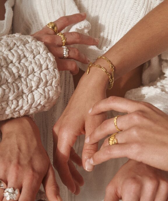 Camille Brinchs Nugget Layers T-Lock armbånd i forgyldt sølv er en elegant og moderne smykkedesign. Armbåndet består af flere små, ujævne “nuggets” i forgyldt sølv, der skaber et råt, men stadig sofistikeret look. Disse nuggets er arrangeret i en tæt kæde, der giver armbåndet en smuk tekstur og et unikt udtryk.