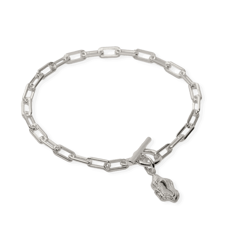 Camille Brinch nugget layers t-lock armbåndet i sølv er en elegant og moderne smykke. Armbåndet er lavet af højkvalitets sterling sølv, hvilket giver det en skinnende og tidløs æstetik.