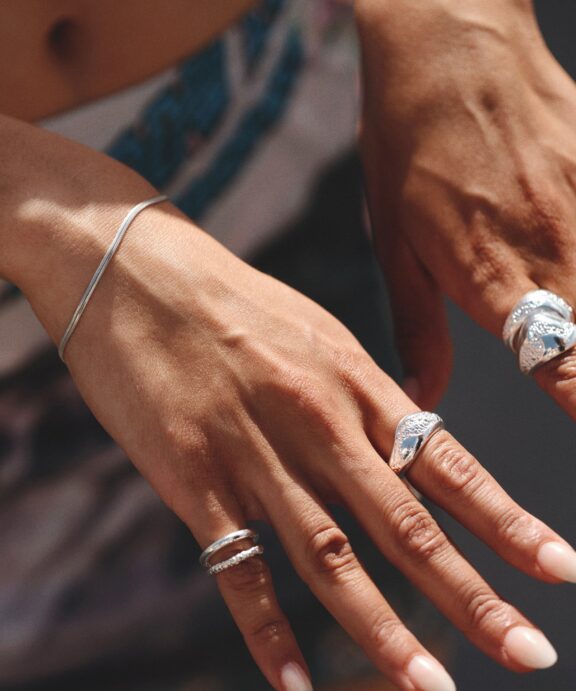 Det small essentia snake armbånd fra Camille Brinch er et smykke, der balancerer det enkle og det rå med ynde. Den fine, slangeinspirerede kæde har en glat og fleksibel struktur, der smyger sig naturligt om håndleddet og følger dine bevægelser med lethed.