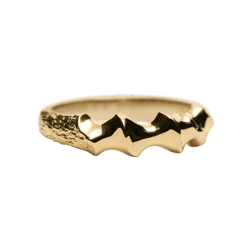 Ringen er fremstillet i 925 sterling sølv og belagt med 22 karat forgyldning, hvilket giver den et varmt og luksuriøst udtryk. Det delikate design gør den ideel både alene og i kombination med andre ringe – perfekt til dig, der ønsker et smykke med både styrke, historie og elegance.