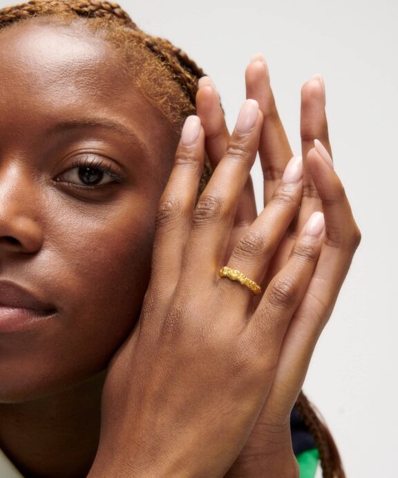 Camille Brinch Stacking Crush ring i forgyldt sølv er en moderne og stilfuld accessory. Denne ring er designet til at kunne bæres alene eller i lag med andre ringe.