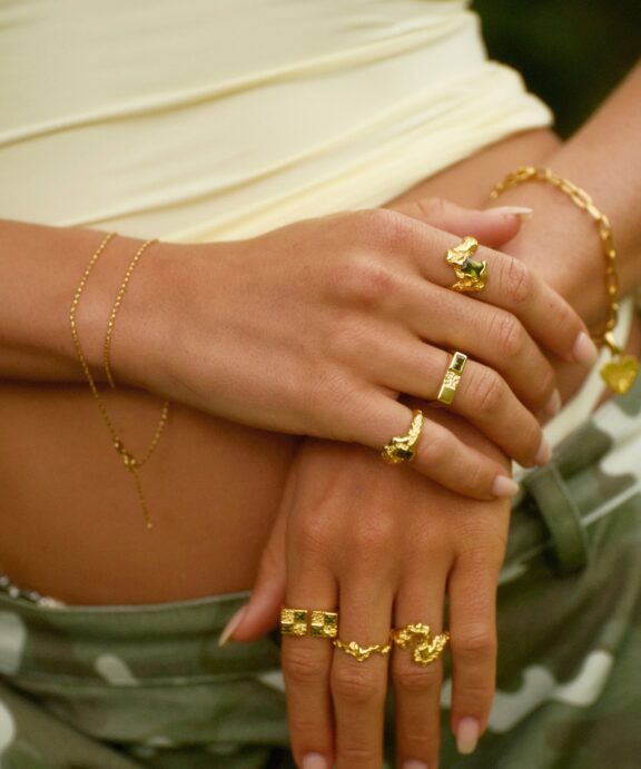 Ringen er lavet i massiv 925 forgyldt sterling sølv. Forgyldningen er en 22 karat forgyldning.
