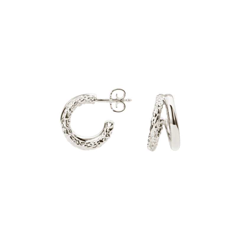 Designet er en del af den populære Essentia-kollektionen, hvor rå detaljer møder bløde linjer og skaber et tidløst look med karakter. Øreringene er perfekte til både hverdagsbrug og festlige anledninger – alene eller i kombination med andre smykker.