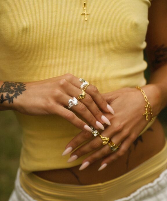Ringen er lavet i 925 forgyldt sterling sølv. Forgyldningen er en 22 karat forgyldning.