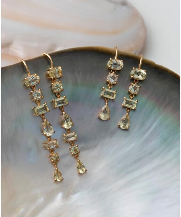 Øreringe i guldbelagt sterling sølv med champagne kvarts.